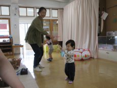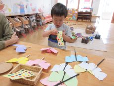 ♪ひらひらひらとんでって ひらひらひらひらこんにちは のわらべうたにあわせながら
